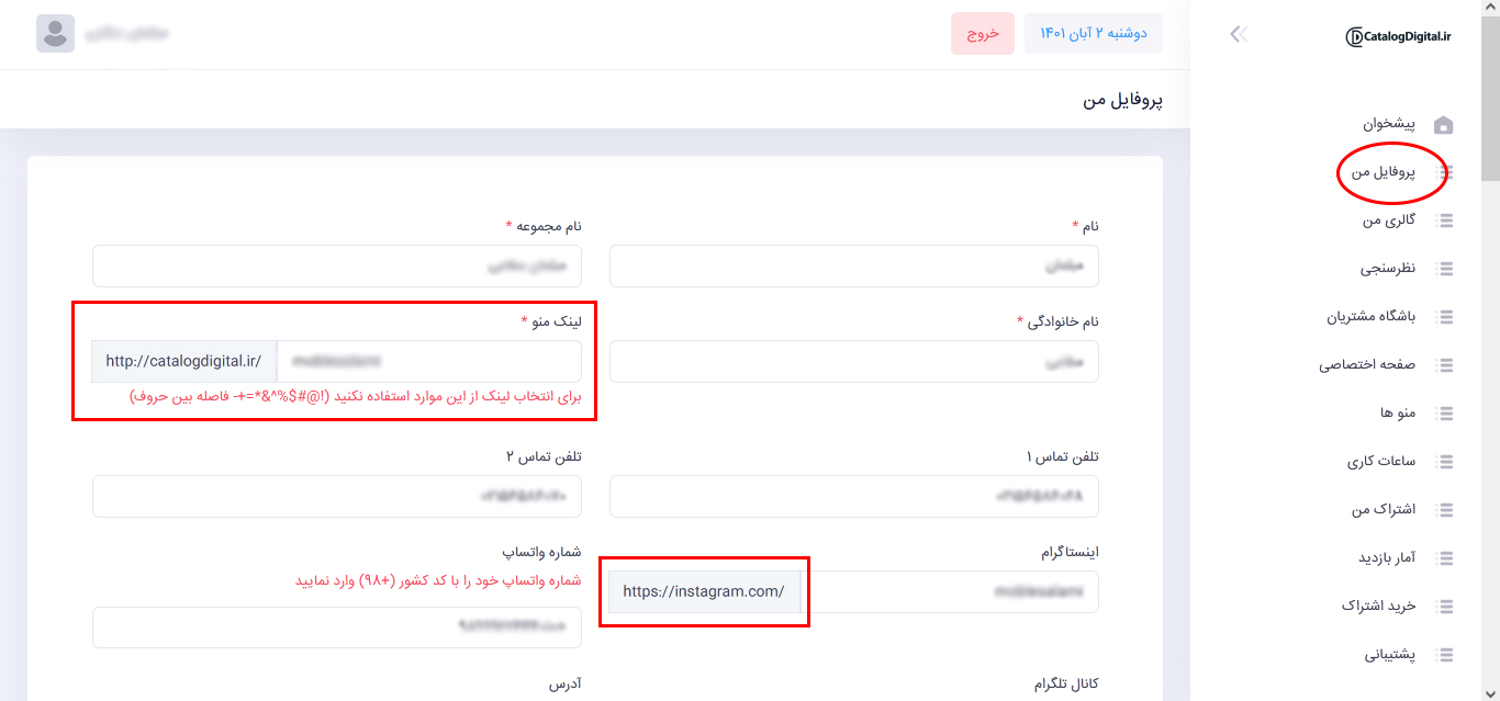 نحوه تکمیل پروفایل و اطلاعات تماس